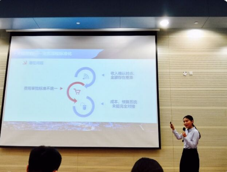 六个团队在有限的时间内,将几万字报告成果的核心内容辅以PPT展示出来。他们有的深入华夏幸福,通过财务共享中心思考并解决相关业务问题;有的走访十二家企业,通过深度访谈报告分析调查企业经营活动现状并进行针对性改善;有的走进中国中铁,通过从R(资源)、E(事件)、A(参与者)三个方面研究税务系统,推动中国中铁的税务管理工作能快步走向智能化;有的深入华润集团,着眼于从价值投资到价值创造再到价值实现这一财务循环视角进行企业价值研究,探究了华润集团价值创造的财务路径;有的走进大贲科技,通过对大数据背景下的兼具服务与互联网特征的新兴软件企业的前景和商业模式的分析,力求促进其业务全方位发展;也有的深入中国联通广东分公司,优化和完善混合后国有企业绩效管理体系,更好地实现混改的目标。展示的成员或慷慨激昂,或娓娓道来,为大家献上一场思维盛宴。此次评审评审出一等奖团队1支、二等奖团队2支和三等奖团队3支。